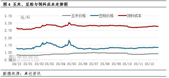 供需僵持压制蛋价,饲料供应利多价格 鸡蛋市场需求迟迟不见好转,供需仍处僵持阶段,蛋价维持低位调整。根据卓创资讯监测的数据显示,11月底全国产蛋鸡存栏量维持下跌趋势,12月份新开产蛋鸡与淘汰老母鸡均呈现减少趋势,存栏量在11月底的13.52亿只的基础上继续减少,但幅度有限,产区供应方面普遍较为充足,部分时间有一定供应压力,整体对蛋价有利空影响。需求方面,12月虽有部分节日,但区域性特点明显,且持续时间短,对需求端的拉动作用微弱,普遍低于业者预期,整体需求量较11月环比降低4.00%左右,需求方面对蛋价的支撑力度不足,供需博弈中不占优势,使得12月鸡蛋价格长期维持低位。截至25日,全国鸡蛋日均价2.88元/斤,较月初跌幅5.88%。