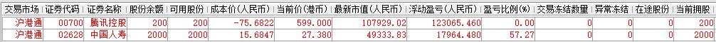 | 账户初始资金:100000.00元 2015年5月18日入金:32000.00元 2015年5月29日入金:9000.00元 2015年6月23日入金:20000.00元 2015年6月26日入金:10000.00元 2015年6月29日入金:20000.00元 2015年7月3日入金:20000.00元 2015年7月8日入金:10000.00元 2016年1月12日入金:90000.00元 2016年1月22日入金:100000.00元 2016年1月27日入金:100000.00元 2016年3月21日出金:270000.00元 2016年4月12日出金:35639.23元 2016年0月10日出金:56913.08元 2016年10月28日入金:60000.00元 2017年3月7日出金:113800.00元 参考市值:174238.85元 账户资产:174643.87元 截至今日账户A股盈亏:-45643.36元 截至今日账户港股盈亏:135962.52元 账户净值:1.955 资金股份