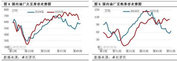 豆粕供应维持宽松 市场价格预计回落 国内豆粕市场供应充足的现状,预计短期难以扭转。25年最后一周数据显示,全国油厂的大豆库存为639万吨,同比增加11.7%;豆粕库存为112万吨,同比增加104%。对于供应端的现状,需求端对于现货的采购偏谨慎;而对于远期,市场采购兴趣较为清淡。因此,供需两端整体呈现宽松,将对豆粕的现货价格形成下行压力。