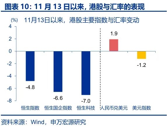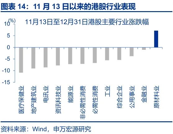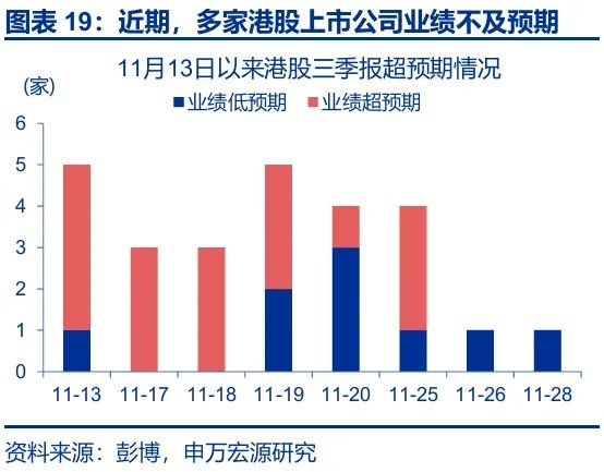 第二,港股12月交投平淡的季节性、海外投资者的获利了结、部分港股上市公司三季报不及预期等也有拖累。1)本轮汇率升值更多由外因驱动而非基本面改善,且时值年终,部分海外投资者的获利了结弱化了外资的“配置效应”。2)历史回溯来看,2011年以来,恒生指数12月的平均换手率为4.4次、为全年各月份最低。3)11月13日以来,多家互联网平台企业、车企等三季报业绩不及预期,对市场情绪也有一定影响,一定程度上强化了获利了结交易的惯性。整体而言,四季度港股市场或以获利了结交易为主,市场整体交投清淡限制了港股对利好因素的即时反馈。