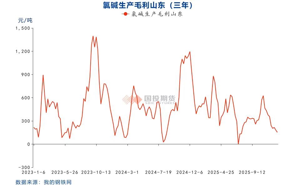 | 元旦前,烧碱盘面出现下行。假日期间,多地现货降价,山东32%液碱、50%液碱价格下调,浙江、河北、河南32%液碱价格下调,江苏48%液碱、广东50%液碱价格下调。山东地区主要氧化铝厂家采购32%离子膜碱价格1月4日起下调15元/吨,执行出厂660元/吨。期现联动,节后第一天盘面大跌,主力合约跌破2200元/吨。烧碱跟随宏观反弹后再度下行,与其高供应高库存的弱现实密不可分。 1、行业开工高压运行 耗氯下游稳定收货,受供需端利好影响,液氯今日价格上调50元,目前山东地区液氯报价普遍在200-300元/吨。烧碱价格下调,氯碱一体化利润压缩,但目前仍有153元/吨的利润,支撑开工高压运行。中国20万吨及以上烧碱样本企业产能平均利用率为86.4%,周产维持在80万吨以上,供给压力较高。 2025年延迟投产叠加2026年计划投产,整体投产量达到274万吨,产能增速约5.5%。若未来利润转弱,企业可能增加检修以及延迟投产,预计产能增速不及5.5%。