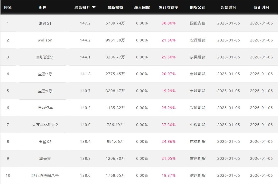 2026年1月【月度排名】(2026年1月1日-1月31日)