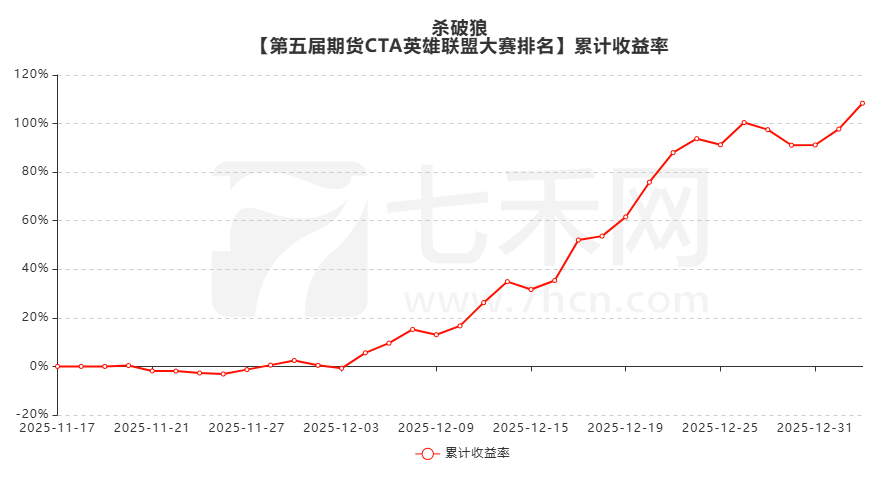参赛账户“杀破狼”,11月中下旬开始交易,12月3号开始净值快速上升。交易的品种有铁矿石、碳酸锂、pvc和铜等,其中碳酸锂的盈利贡献最大!