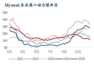 数据来源:钢联数据 东北区域:上周港口库存小幅递减,港口库存188.4万吨,周环比降3.6万吨。东北市场表现无明显波动,港口调度正常,拉运基本终端刚需为主。市场煤需求表现不足,观望情绪浓厚。加之前期进口煤炭供应有所保障,库存可用天数乐观影响下未进行大规模冬储补库,港口库存变化较小。