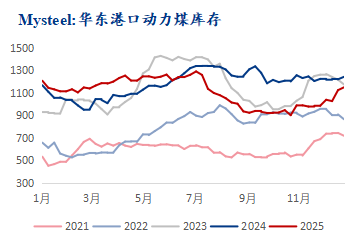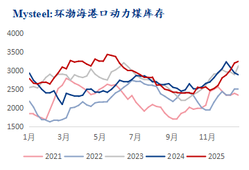 数据来源:钢联数据 环渤海区域:上周港口库存递减明显,港口库存3039.0万吨,周环比降241.0万吨。临近年底,产地部分生产煤矿已完成本年任务,供应端减少,煤价上涨,港口发运倒挂,调入小于调出,库存递减明显。加之市场对冷空气依有期待,询盘现象增多,出货较前期好转。随新年来临,产地多数煤矿生产计划陆续开启,供应端恢复正常,但发运倒挂现象依旧严重,调度依旧不平衡,港口库存持续下降。