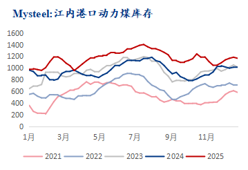 数据来源:钢联数据 江内区域:上周港口库存小幅上涨,港口库存1208.6万吨,周环比增26.4万吨。江内港口库存呈持续上涨趋势,冷空气暂无全面释放,终端日耗难有上涨,需求表现平平。而受北港市场挺价情绪影响江内部分贸易商捂货惜售,市场成交困难,库存递增明显。
