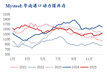 数据来源:钢联数据 华南区域:上周港口库存有所下降,港口库存1249.0万吨,周环比降74.0万吨。随进口煤存在价格优势,对国内资源形成有效补充,终端仍以优先采购进口煤为主。节后市场挺价情绪依旧,外矿货源紧缺,报价坚挺,而下游对高价接货能力有限,到港船量减少,需求预期暂未明显释放下港口拉运延续刚需。