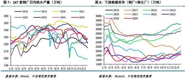 焦煤05合约潜在利好:受上述消息影响,焦煤加权指数涨70元/吨,基本涨停。未来焦煤05合约仍有一些潜在利好因素。包括:钢厂复产带来的日耗增加、春节前冬季补库。目前日均铁水产量227.43万吨,1月份钢厂复产,铁水产量有望增加,带动焦煤日耗走高,且离240万吨以上的产量距离较大,焦煤消耗需求增长空间较大。下游焦煤库存1854万吨,与去年水平基本一致,春节前有一定的补库需求,预计补库空间在200-300万吨左右。潜在供给政策变动,叠加需求改善预期,有望打开焦煤价格上涨空间。