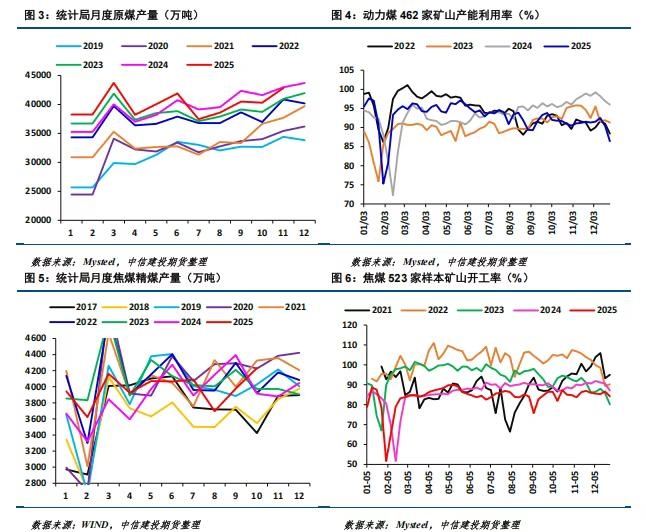 二、具体影响几何? 据了解,榆林市政府电煤保供视频会上通报,当地52处核增产能煤矿中,有26处煤矿被调出保供名单,核减产能1900万吨,剩余26处煤矿核增产能暂予保留,并将根据2026年度电煤中长期合同签订履约情况,视情调整出保供煤矿名单并核减其产能。按照煤矿比例来看,榆林有50%的核增煤矿被除名。自2021年煤炭核增产能政策以来,这则消息可能指向了未来核增产能政策的变化,若全国范围内陆续推广,对煤炭价格影响可能会比较大。 影响量级:统计局数据,2024年原煤产量47.59亿吨,2025年1-11月原煤产量44.02亿吨,全年产量预估在48.30亿吨左右。按照钢联数据,2024年样本内煤矿产能利用率均值在93.39%、2025年为92.57%。假设核增产能产能利用率也在90%附近,则6.5亿吨左右的核增产能对应年产量5.85亿吨,占2024年总产量的12.1%。在能源保供中,这部分增量起到了关键作用。若单独只有榆林执行此政策,则对应煤炭产量下降1700万吨,占全国原煤产量的0.35%,对国内煤炭供给影响较小。若按照榆林50%核减比例估算,全国煤炭产量下降2.9亿吨,占全国总产量的6%左右,对国内煤炭供给将造成重大影响。若线性外推到焦煤的话,全国焦煤精煤产量可能减少3000万吨左右,占全国焦煤供给量(国产+进口)的5%左右。所以,未来此项政策是否在全国范围内扩散,以及核减比例,需要重点关注。
