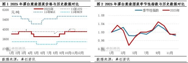 2025年浆价波动幅度收窄 2025年漂白蔗渣湿浆价格波动幅度收窄。卓创资讯监测,2025年漂白蔗渣湿浆市场价格波动幅度较2024年收窄250元/吨,原因主要有:一是,漂白蔗渣湿浆价格跌至成本线附近,浆厂惜售心理增强,陆续降产保价;二是,下半年进口阔叶木浆现货价格跌至低位后反弹,叠加广西地区部分生活用纸新产能投放,支撑浆厂心态。