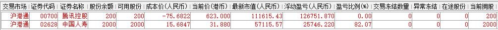 | 账户初始资金:100000.00元 2015年5月18日入金:32000.00元 2015年5月29日入金:9000.00元 2015年6月23日入金:20000.00元 2015年6月26日入金:10000.00元 2015年6月29日入金:20000.00元 2015年7月3日入金:20000.00元 2015年7月8日入金:10000.00元 2016年1月12日入金:90000.00元 2016年1月22日入金:100000.00元 2016年1月27日入金:100000.00元 2016年3月21日出金:270000.00元 2016年4月12日出金:35639.23元 2016年0月10日出金:56913.08元 2016年10月28日入金:60000.00元 2017年3月7日出金:113800.00元 参考市值:187355.00元 账户资产:187759.64元 截至今日账户A股盈亏:-43995.36元 截至今日账户港股盈亏:147430.67元 账户净值:2.102 资金股份