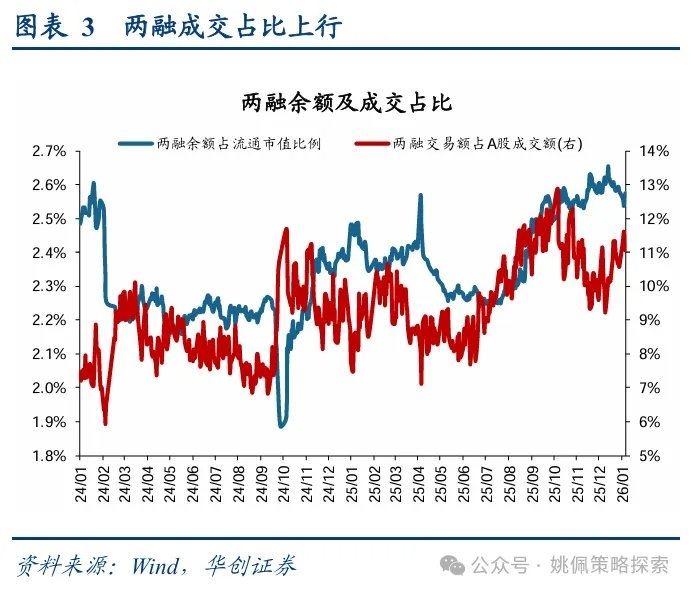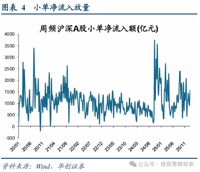 本轮科技“小登”的活跃主要由于短线增量资金在具备增长基础的方向中寻找估值弹性,而非推升存量资金已抱团的“老登”科技。科技内部的“老登”“小登”分歧主要在于增量资金,“老登”科技已普遍形成存量资金的抱团,共识度高。从增量资金结构看,本轮行情的启动主要由A500 ETF大幅流入推动,随后蔓延至两融、小单及私募资金的放量,资金属性整体偏短、偏交易:从两融交易额占全A成交额来看,已由12/12的9%上升至1/8的11%;小单(挂单额小于4万元)净流入额上,12/01-12/05单周流入958亿元,本周净流入达1557亿元;私募备案规模上看,25下半年同样持续放量,已从6月501亿元放大至11月的713亿元。由于加杠杆后的资金成本较高,此类资金更偏好具备高弹性和主题想象空间的方向。商业航天、脑机接口等新主题之所以受到关注,本质并非单纯概念炒作,而是在军工(26年EPS同比37%,下同)、机械(19%)等本身26年具备较高增长预期,通过引入新的产业叙事来实现估值再定价。当前若为了寻找还能在预期增长上拔估值的行业,我们认为该行业须同时具备26年较高的预期增长及近期业绩的动态上修,具体而言我们关注以下两个角度:①EPS同比,即26年EPS预期相对25年EPS增长预期较强,其中由于EPS的wind一致预期通常较为乐观,我们根据7月以来实际EPS/去年同期一致预期EPS的中位数对26E EPS进行折算;②近四周26E净利润上修/下修公司比例较高,基于此我们归纳出26年业绩预期较强且近期业绩动态上修的行业包括非银、通信/电子、军工、有色/建材/钢铁、商贸零售。