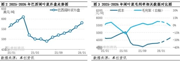 2026年一季度成本端走强或主导延续浆价涨势,但需求端仍拖累浆价涨幅 外盘持续上涨,增加一季度成本端压力,或助推业者积极探涨。受2025年11月至2026年1月阔叶浆外盘报价接连提涨影响,预计一季度到港浆价成本(假设汇率保持当前水平)环比将上升约6.28%。成本端的显著上移将对国内浆价形成直接支撑,进而推动市场从业者在销售中尝试调涨报价。这一成本传导效应,为浆价高位运行提供了较强的底部支撑。