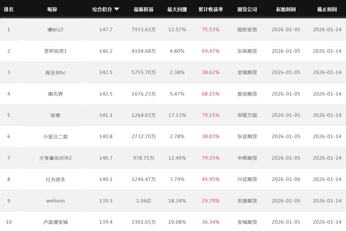 2026年1月【月度排名】(2026年1月1日-1月31日)