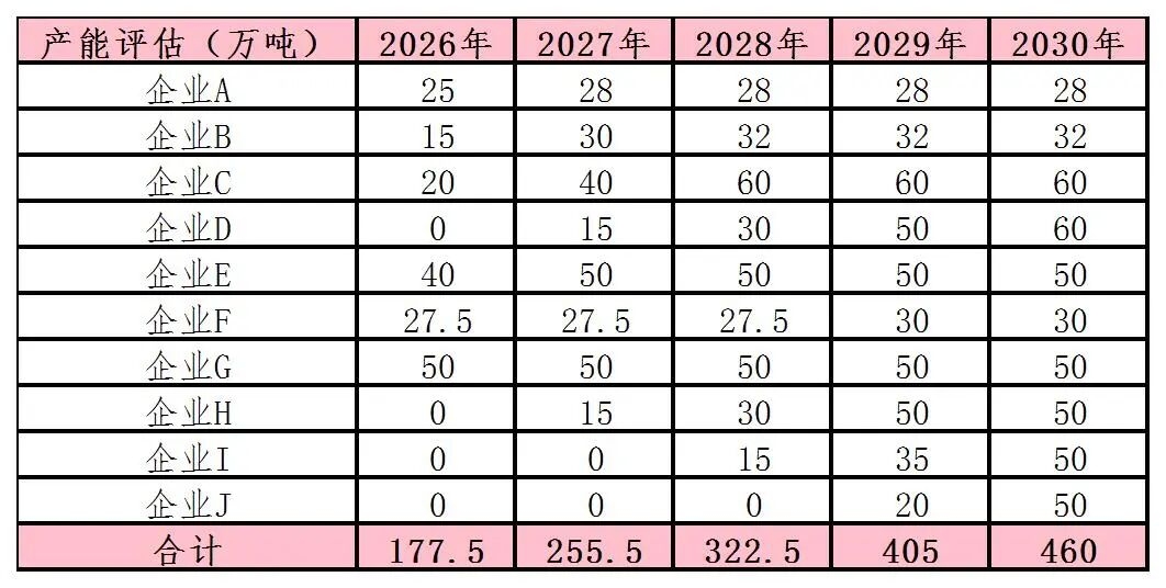 数据来源:阿拉丁(ALD) 从近年来印尼电解铝行业的投建节奏来看,印尼本土电源建设发展有所加快,新建机组以化石能源消耗为主,主要依托为经济增长和工业规模配套。只是,新建电网建设周期一般较长,大型机组建设周期普遍在20-24个月之间,实际进度也跟投资主体资金规模和资金投入效率较为相关。 2026-2030年印尼电解铝产量评估表