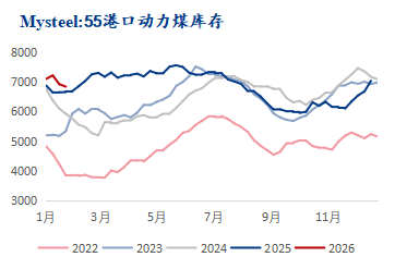 | 报告品种:动力煤 原文链接:https://mp.weixin.qq.com/s/Rqen98QpVY5XRH-WdGcQfw?scene=1&click_id=16 概况:上周大部分煤矿维持正常生产,多以保障长协发运为主,煤炭供应基本稳定。大集团外购价格小幅上涨,叠加终端补库需求略有释放,产地市场情绪阶段性提振。但下游企业多以刚需采买为主,需求释放力度有限。港口市场价格整体偏强运行,现货成本偏高情况下部分有货贸易商挺价情绪较强,而下游维持刚需采购,成交情况一般。截至1月9日,Mysteel调研全国55个港口样本,动力煤库存为6830.8万吨,周环比减少82.2万吨。各区域详细情况见下文: