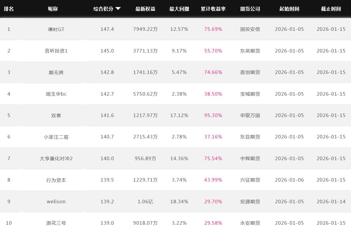 2026年1月【月度排名】(2026年1月1日-1月31日)