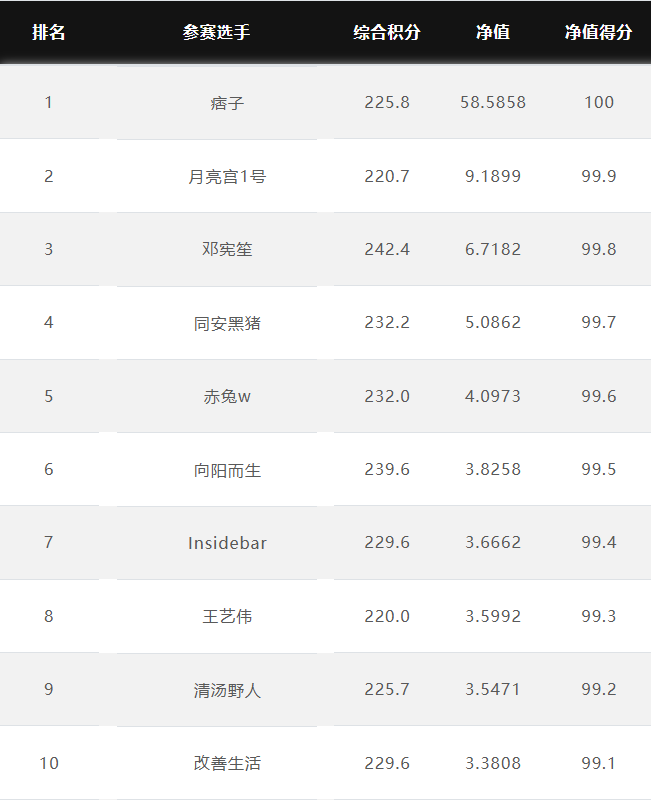 大赛净值排名前10名 2026.1.20