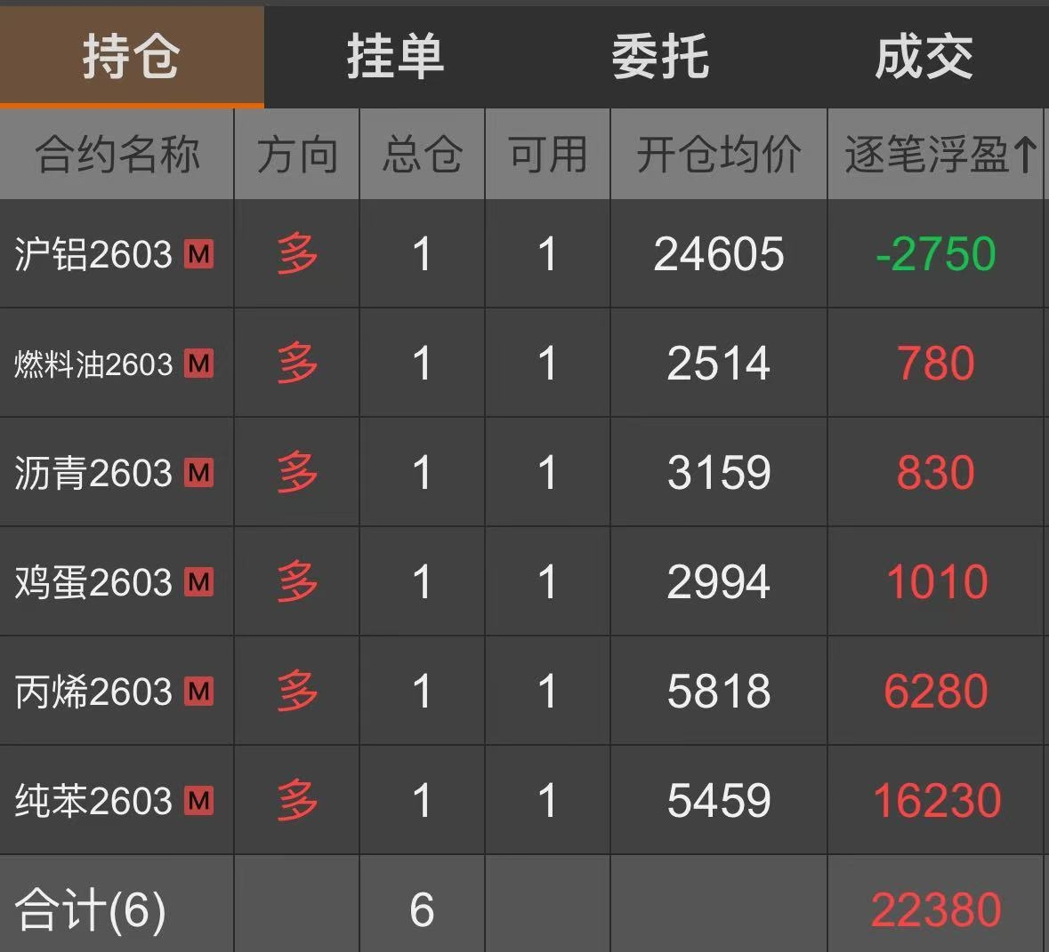 沪铝、沥青、丙烯、纯苯、燃料油、鸡蛋多单持有——交易总结(“启动点”策略的开平仓)2026.1.22