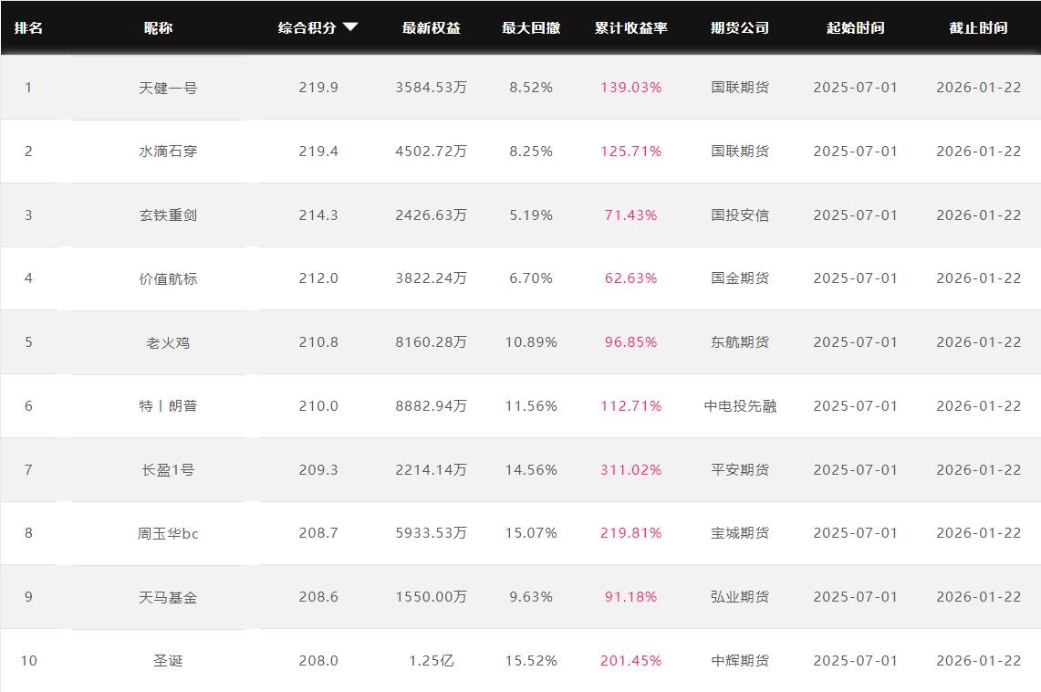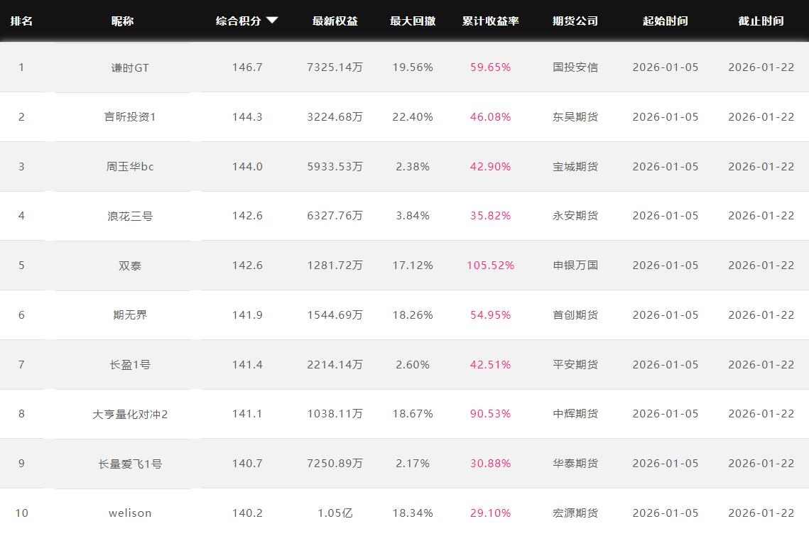 2026年1月【月度排名】(2026年1月1日-1月31日)