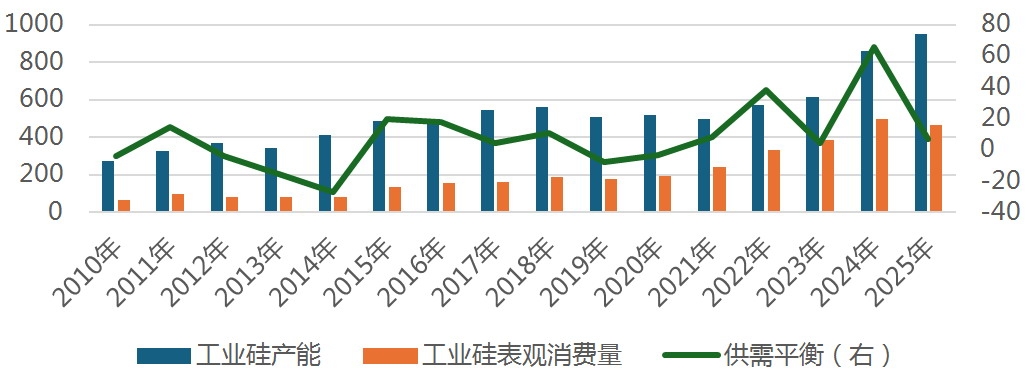 | 2022年工业硅期货上市后,上下游企业积极参与套期保值,延缓了行业产能出清进程,拉长了价格调整周期。截至2025年年底,全国工业硅名义产能达960万吨,同比增长10.67%;当年行业产量为470万吨,消费量为463万吨,全年开工率仅为48.95%。产能与需求数据均表明,行业尚未走出供需错配的周期。2025年,全国未开工的工业硅产能高达347万吨,占名义产能的36.26%。即便这部分产能在2026年完成市场化出清,叠加当年预计新增的70万吨产能,行业有效产能仍将维持在680万吨的高位,产能过剩格局难以扭转。在供给侧政策尚未明朗的背景下,预计2026年工业硅价格将主要围绕成本定价,整体呈现宽幅震荡格局。 全年需求总量预计缩减 展望2026年,汽车行业有望保持一定景气度,但受成本上升与补贴退坡影响,新能源汽车行业对有机硅材料的需求增速或将放缓。光伏领域,随着海外组件产能持续释放,叠加欧美对华组件加征高额关税,国内新增光伏装机需求预计同比下滑,这将导致国内光伏组件产量收缩,进而拖累有机硅需求。地产、基建、医药等行业景气度难有显著提升,乐观预计,2026年有机硅终端需求同比增速约为5%。 多晶硅企业目前库存超过30万吨,占用资金达100亿至120亿元。2026年,该行业的核心经营目标将是去库存与维持现金流稳定,预计全年产量可能下滑至110万吨附近,对应多晶硅领域对工业硅的需求同比缩减15%以上。铝合金终端应用广泛,尽管其在光伏领域的需求面临下滑,但在“电力出海”的行业趋势下,铝合金总需求同比有望维持约5%的增长。 海外市场方面,陶氏有机硅已关停其欧洲产能,而安哥拉、中东等地区的工业硅产能可能在2026年释放增量,这将挤压国内工业硅的海外市场空间。乐观预计,2026年我国工业硅出口量将同比持平。综合来看,预计2026年工业硅三大下游领域及出口需求合计将同比缩减5.61%,总量降至405万吨。 从需求节奏看,2026年一季度是有机硅、铝合金的传统消费淡季,两大领域对工业硅的需求环比走弱。多晶硅行业或在2月后加大减产力度。进入三季度后,随着多晶硅企业逐步复产,工业硅需求有望迎来边际回暖。 区域开工具备韧性 工业硅产能的启停具备成本低、耗时短的特点,企业一旦具备利润空间即可复产。因此,2026年的总供应量需结合需求规模及行业库存的蓄水能力来综合测算。尽管需求走弱,但中游环节蓄水能力提升后,行业总库存可能难以显著去化,预计2026年主流牌号工业硅的供应量约为410万吨。 分区域看,新疆、内蒙古等西北产区产能以33000KVA大炉型为主,依托低成本优势,开工韧性较强。在煤炭价格无显著波动的假设下,西北产区自备电产能的完全成本可低于8000元/吨,其中新疆绝大部分硅厂成本可控在8800元/吨以内,其他西北省份产能成本亦多能控制在9500元/吨以内。 西南产区方面,云南保山、四川等部分依托小水电的硅厂,在丰水期电价可降至与西北产区相当的水平,生产成本无明显劣势。此外,有机硅生产及部分出口订单对工业硅的微量元素指标有特定要求,对应产品存在质量溢价,这使得西南地区的小炉型企业可在丰水期有针对性生产差异化牌号产品。因此,预计2026年丰水期西南产区开工率将保持一定韧性,乐观情形下,云南、四川两地月度产量合计可达6万吨。 关注供给侧相关政策 工业硅供给侧相关政策主要聚焦两大层面:能耗约束与小炉型产能淘汰。能耗约束政策具备较强灵活性,旨在通过单吨能耗指标限制供给,同时淘汰粗放式生产及落后产能,推动行业技术升级。若能耗标准进一步收紧,部分小型硅厂可能被迫加装余热回收装置或转产低牌号产品,这不仅会硬性约束行业开工率,还可能重构不同牌号产品的供应格局。若针对12500KVA及以下炉型的淘汰政策在2026年落地,短期内行业产能或将在现有基础上缩减超过35%。