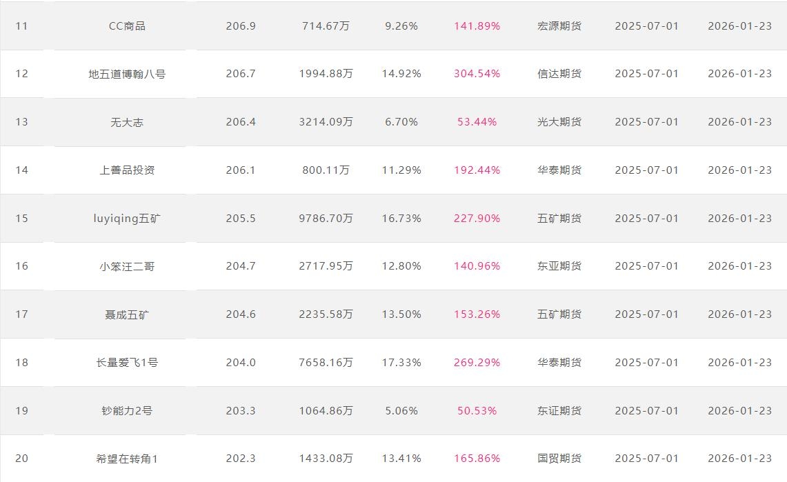 2026年1月【月度排名】(2026年1月1日-1月31日)