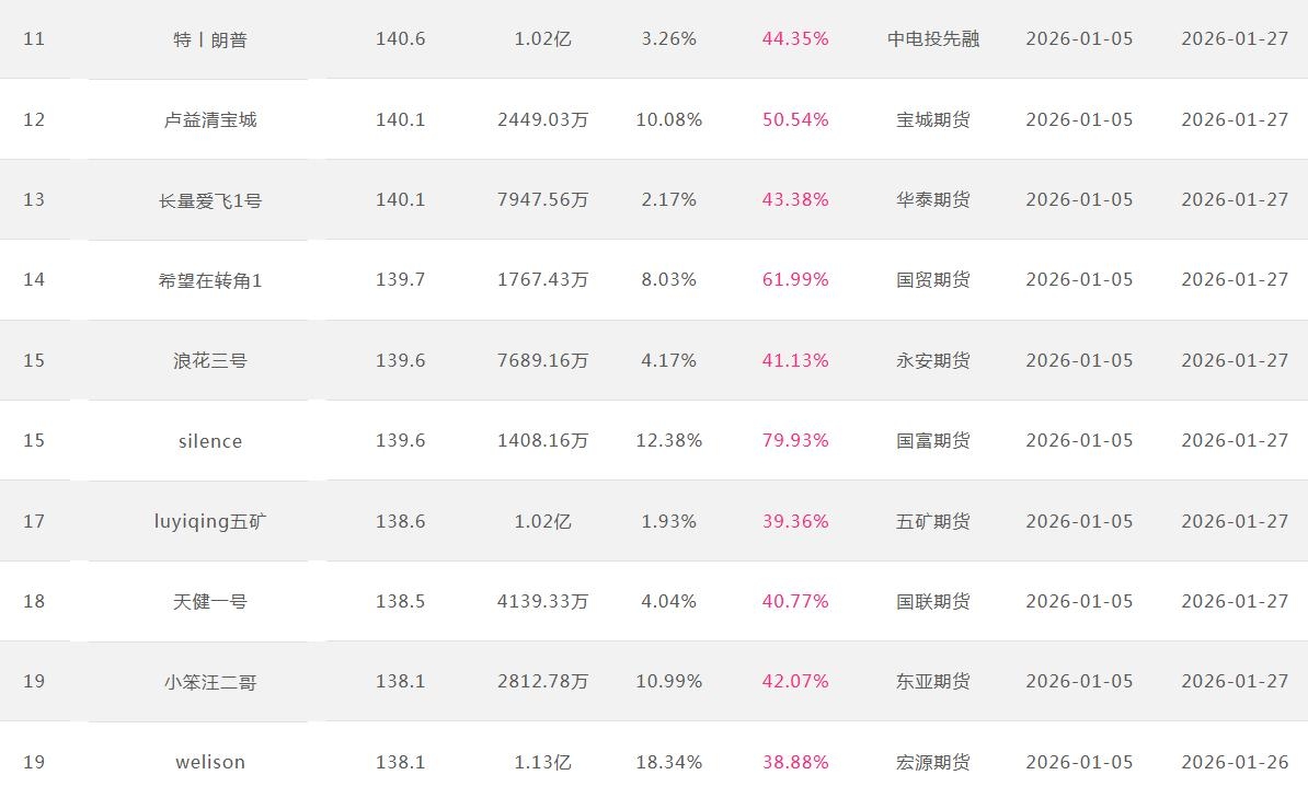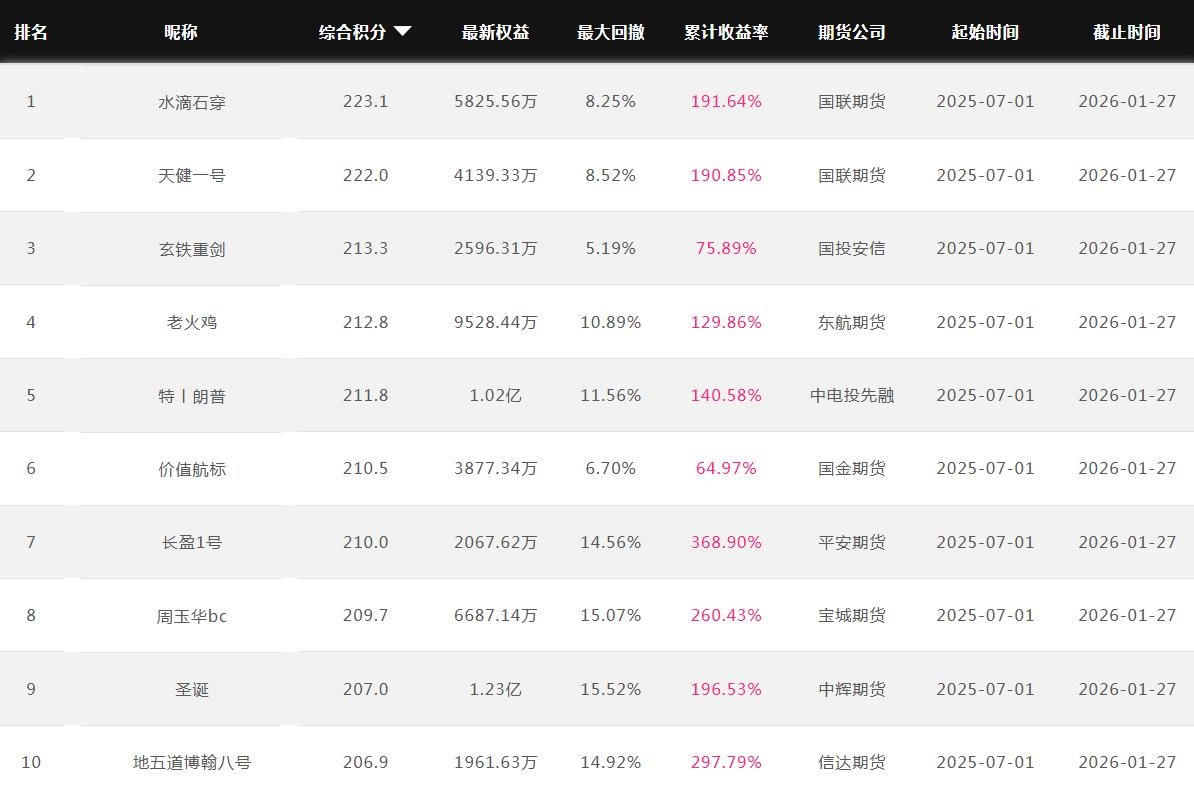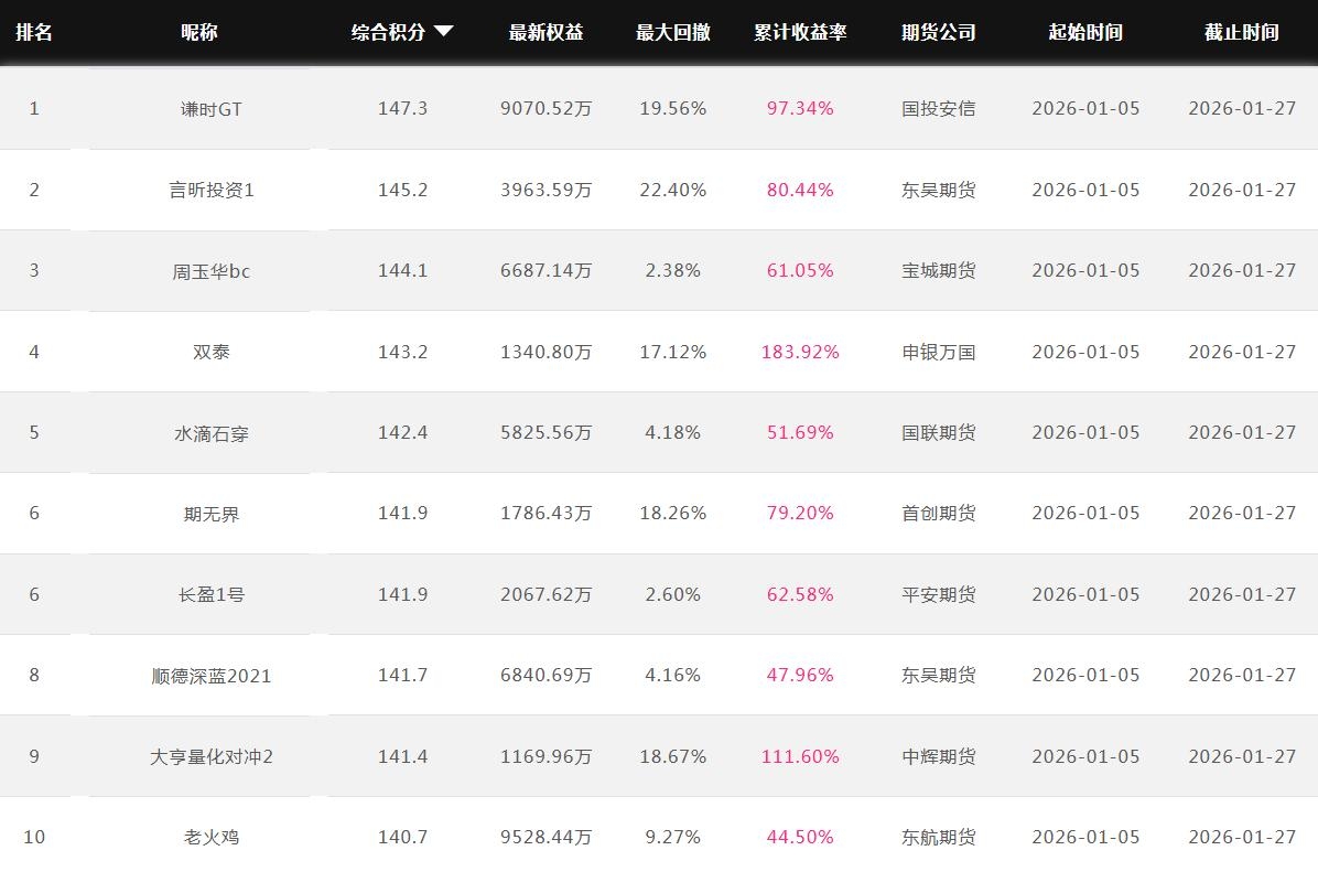 2026年1月【月度排名】(2026年1月1日-1月31日)
