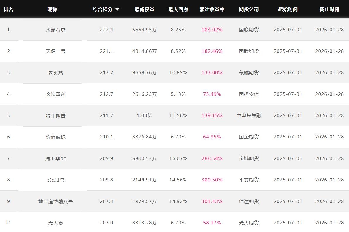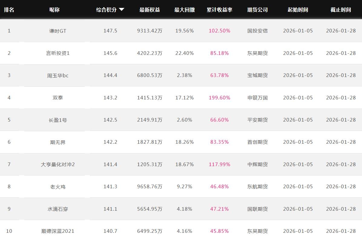 2026年1月【月度排名】(2026年1月1日-1月31日)