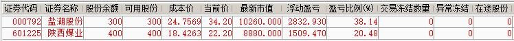 | 账户初始资金:100000.00元 2015年5月18日入金:32000.00元 2015年5月29日入金:9000.00元 2015年6月23日入金:20000.00元 2015年6月26日入金:10000.00元 2015年6月29日入金:20000.00元 2015年7月3日入金:20000.00元 2015年7月8日入金:10000.00元 2016年1月12日入金:90000.00元 2016年1月22日入金:100000.00元 2016年1月27日入金:100000.00元 2016年3月21日出金:270000.00元 2016年4月12日出金:35639.23元 2016年0月10日出金:56913.08元 2016年10月28日入金:60000.00元 2017年3月7日出金:113800.00元 参考市值:193406.03元 账户资产:193809.90元 截至今日账户A股盈亏:-43479.36元 截至今日账户港股盈亏:152965.7元 账户净值:2.170 资金股份