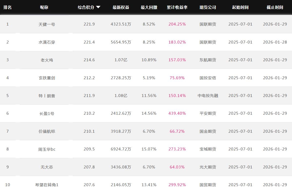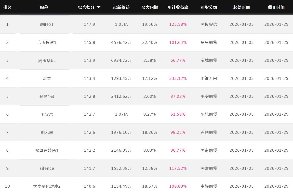 2026年1月【月度排名】(2026年1月1日-1月31日)