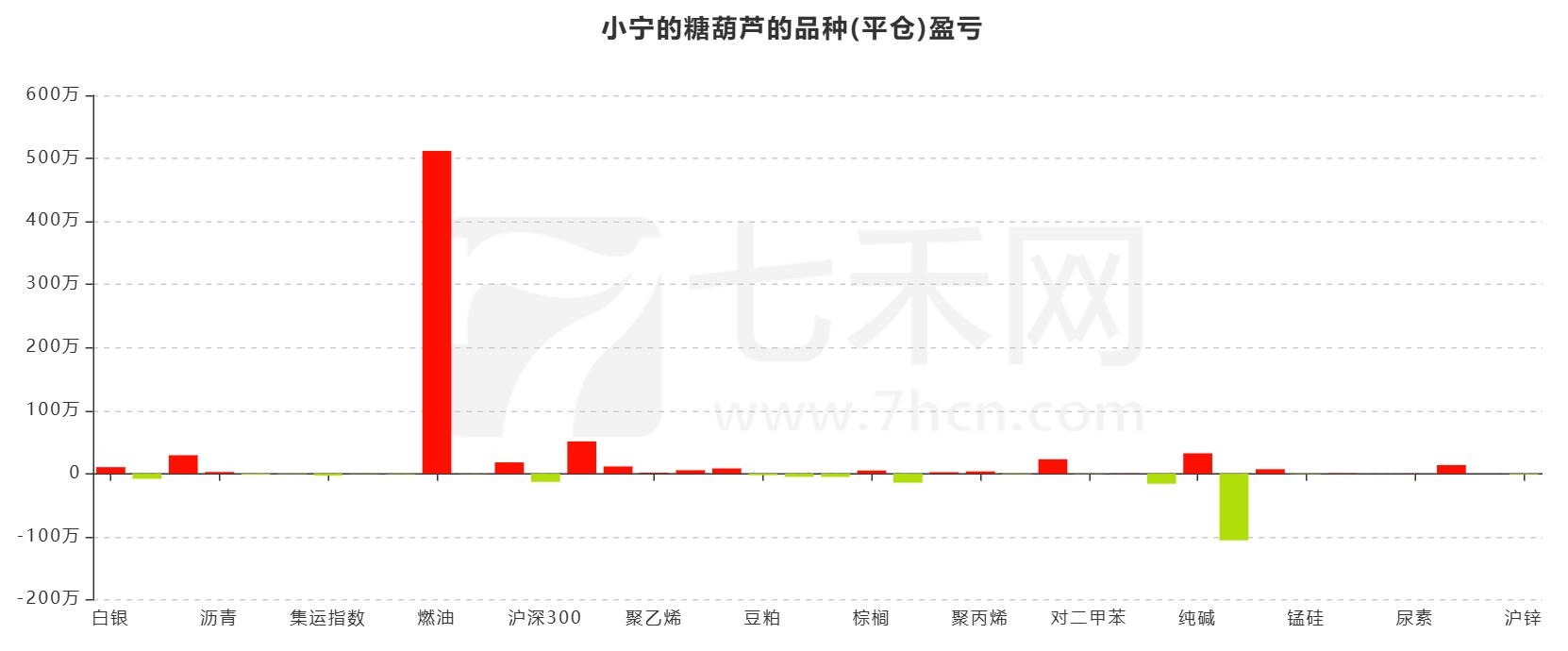 账户“小宁的糖葫芦”采用多品种交易,主做的品种有燃油、原油、低硫燃油,盈利主要来源于燃油,在燃油上盈利511.8万。