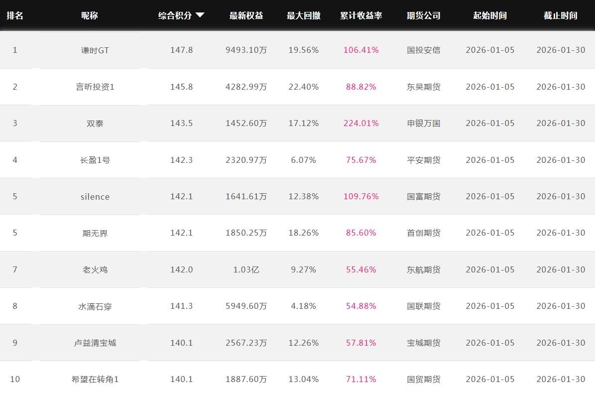 2026年1月【月度排名】(2026年1月1日-1月31日)