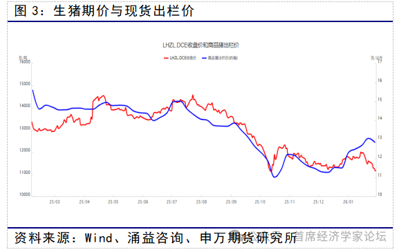 三、热点品种 1、生猪 生猪(LH):现实不及预期,远期再显悲观 本周生猪期货市场整体呈现弱势下行格局,主力03合约大幅减仓,次主力05合约持仓量创历史新高。价格核心受制于节前养殖端的出栏节奏与需求端支撑不足的现实。周内生猪现货价格呈现弱势,前期因多地降雪天气影响运输,导致出栏节奏偏慢,养殖端存在惜售情绪;但后期由于白条走货不畅,终端对高价猪肉接受度低,屠宰企业订单减少、开工率下滑,价格随之窄幅回落。期货盘面叠加节后淡季预期,走势弱于现货,基差维持在高位。市场关注焦点集中于春节前的出栏进度,当前缓慢的节奏加深了对于节后供应压力释放的担忧,而仔猪价格的持续上涨则在一定程度上制约了产能去化的预期。 1.供给端:出栏进度偏慢,出栏体重小幅下降至127.86公斤,上周为128.89公斤。临近春节,部分地区生猪出栏进度仍滞后于计划,加剧了市场对节后集中出栏导致供应压力后置的担忧。 二次育肥介入:当前价格区间吸引部分二次育肥户进场,截流了部分本应流入市场的标猪,中旬二育栏舍利用率普遍上升,山东二育补栏略显克制,上旬利用率为36%,中旬仅上升一个百分点,至37%。二育补栏对短期现货价格形成一定支撑,但同时也增加了未来的潜在供应。 2.需求端:终端市场对高价猪肉的抵触情绪明显,批发市场白条猪走货速度普遍偏慢,本周鲜销率为93.44%,与上周数据基本持平。屠宰企业订单减少,压价收购意愿增强。尽管有节日备货预期,但实际消费提振力度不及往年同期,表现为“旺季不旺”的特征。