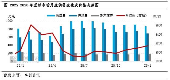 2026年2月价格驱动因素评价 国际市场:巴西收割加速,美豆期价承压,关注阿根廷天气。根据马托格罗索州农业经济研究所(IMEA)数据显示,截至1月30日当周,2025/26年度马托格罗索州大豆收割进度已达种植面积的24.97%,比一周前推进了11.09%。高于去年同期的12.20%,也高于过去五年均值的12.57%。巴西大豆的收割加速已经丰产预期的稳固带给CBOT期价压力,传导至国内豆粕价格带来偏空影响。此外,月内重点关注阿根廷天气情况,由于持续干旱,布宜诺斯艾利斯和圣塔菲的土壤湿度预计将持续偏低。近期能否降雨对晚播作物的影响更为显著。 供应预期:原料大豆供应呈现季节性回落,工厂春节期间停机,企业开工负荷降至年内低位水平。首先,原料方面,根据卓创资讯对大豆到港预估以及国内压榨企业开停机情况调研显示2026年2月-4月大豆到港预计分别为490万吨、500万吨、1000万吨,大豆到港量呈现季节性下滑,走势呈现先紧后松。开机方面:受节日效应影响,春节期间多数企业均有停机计划,2月份生产企业开工负荷率或降至年内最低水平。结合当前国内生产企业原料大豆及豆粕库存情况,截至2026年1月30日当周,国内重点生产企业原料大豆库存613.8万吨,豆粕库存89.8万吨,均处于历史同期高位水平。春节前后国储拍卖进口大豆工作或恢复进行,一定程度上补充市场原料供应。综合来看,2月份原料端有收紧预期,但现货市场宽松格局或限制豆粕价格上涨空间。 需求预期:春节前备货进入尾声,节后归来终端或有小补需求。春节备货窗口期不断缩短,市场备货氛围预计由强转弱,部分中大型企业物理库存基本可以覆盖至3月初。节后归来,部分中小企业和终端或有库存需求,整体来看,受假期影响,下游需求量将下滑,对豆粕价格带来中性影响。 综上所述,进入2026年2月,市场供需同降,供需差或进一步下降,支撑现货价格。卓创资讯预计现货一口价重心或环比小涨。 (卓创资讯 王汝文) 责任编辑:七禾小编 |