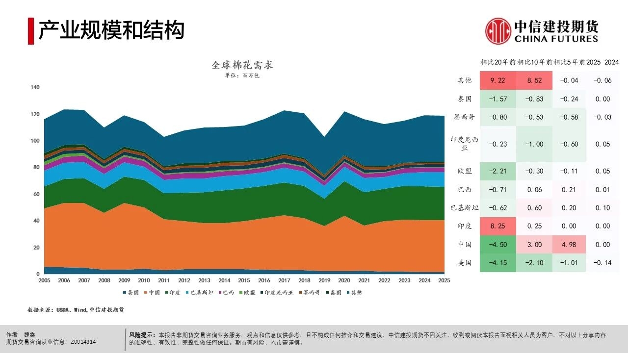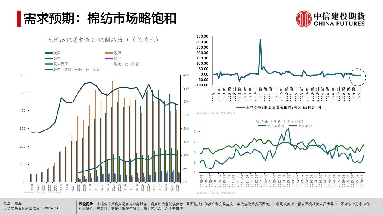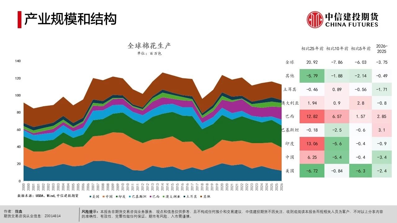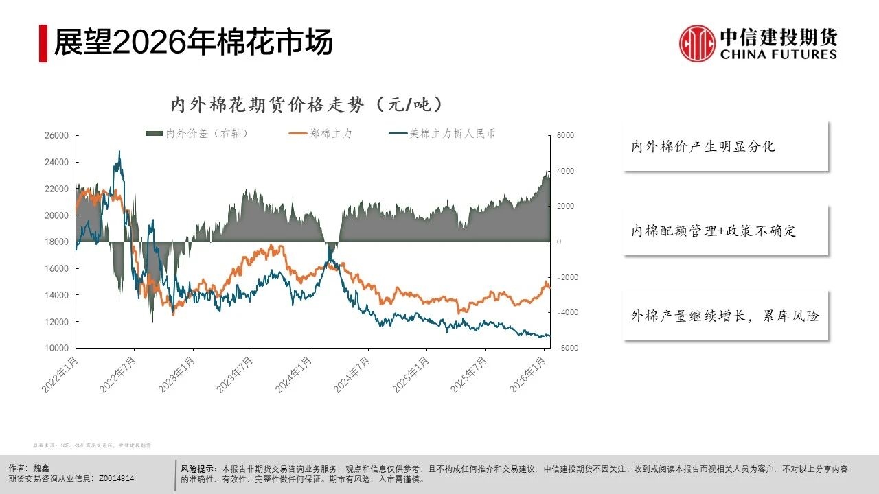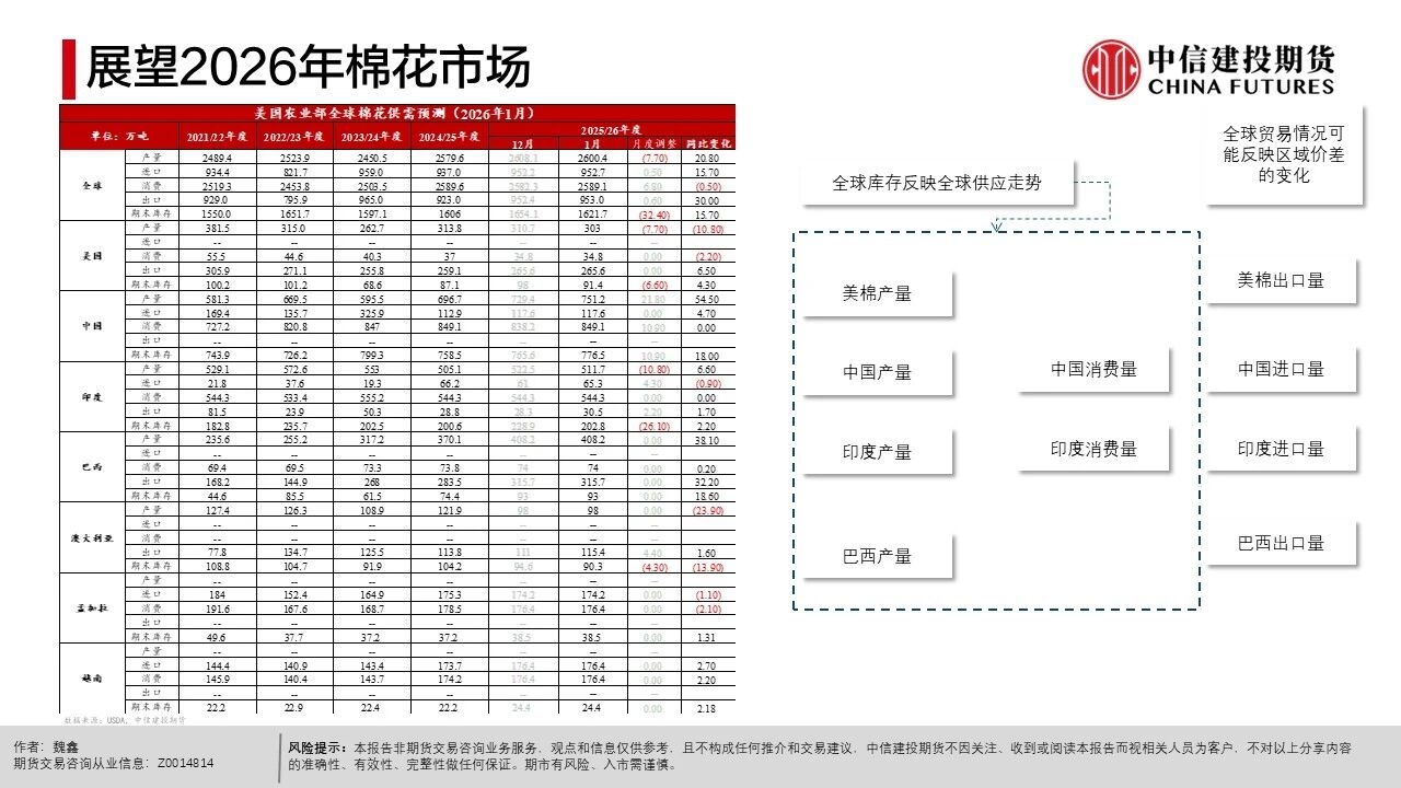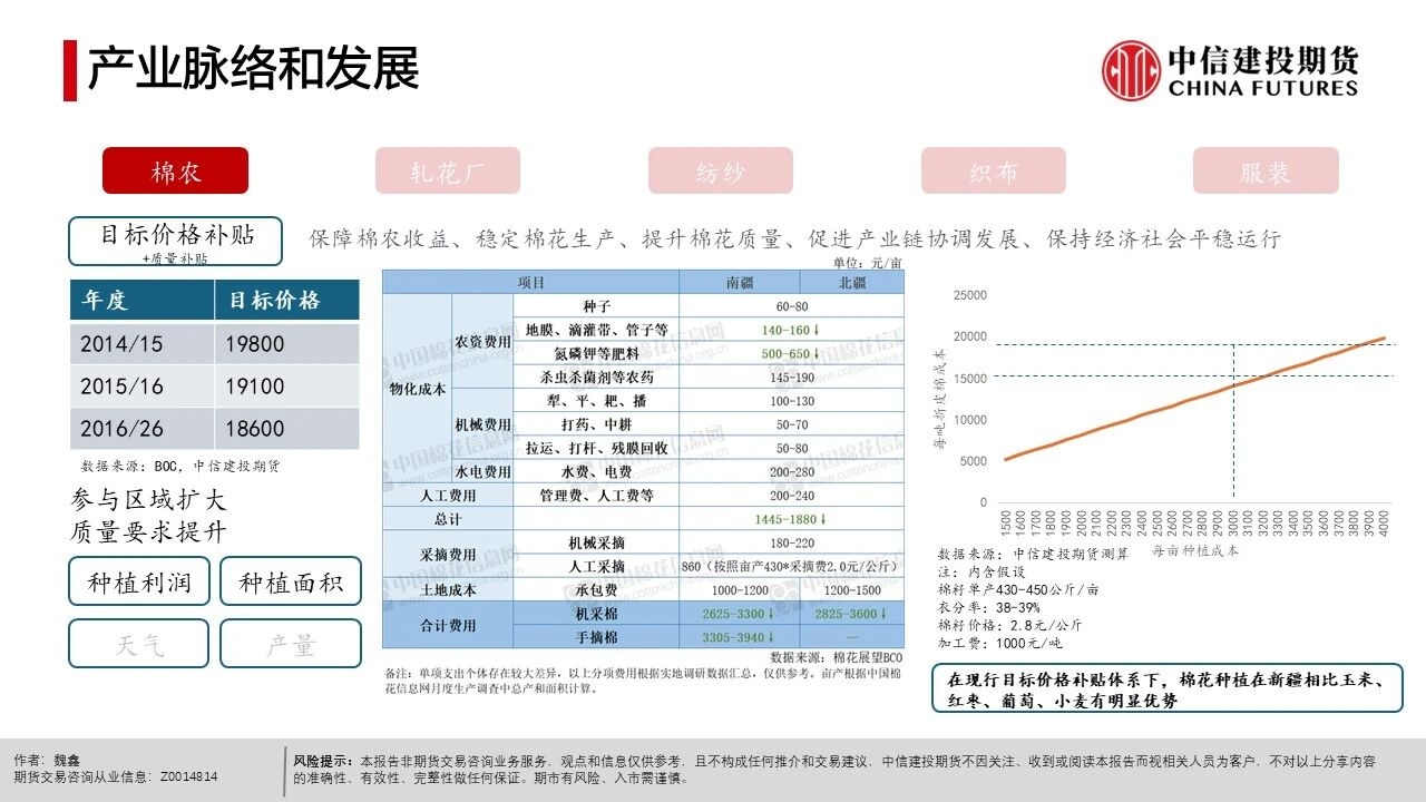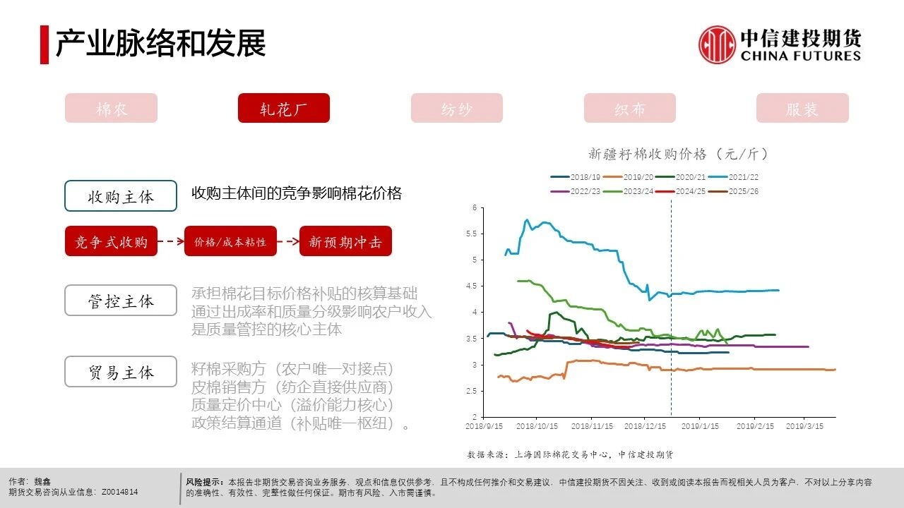| 一、全球棉花供需格局:巴西植棉的激增 全球棉花生产格局正经历深刻变革。从生产端看,2012年至今全球棉花种植面积呈现震荡收缩态势,核心制约来自中美两大主产国。中国长期执行"控面积、提质量"政策,新疆地区虽存在扩张冲动但受政策约束;美国种植面积保持稳定;澳大利亚2025年种植面积出现明显收缩。唯一具有持续增产潜力的巴西,其2526年度产量预计达300万吨以上,较2010年增长三倍,主要得益于中西部地区推行大豆-棉花轮作模式提升土地利用率。然而全球单产水平差异显著:巴西达到1950公斤/公顷,中国维持更高水平,而印度仅500公斤/公顷,显示不同产区潜力悬殊。需重点关注巴西产量的可持续性(单产已达1950公斤/公顷,但新年度预计略有下滑)及印度MSP支持政策(2025年上调9%)对农民种植意愿的刺激。 需求端呈现刚性收缩特征。全球棉花消费高度集中于服装纺织领域,面临化纤替代的持续冲击。中国、印度、巴基斯坦及东南亚国家构成主要需求方,其中中国年消费量约700-800万吨,但近年受外贸环境变化影响,需求增长明显放缓。值得注意的是全球贸易流向因政策干预发生重构:美国对新疆棉制裁导致贸易格局重塑,巴西棉成为中国主要进口来源,美棉则转向东南亚市场。这种结构性变化使得全球棉花市场呈现"区域割裂"特征,内外价差持续存在。 库存周期成为关键变量。2025年全球期末库存消费比攀升至75%左右,处于历史偏高水平,主要压力来自巴西创纪录产量与中国进口需求减弱。但库存分布不均,中国以外市场库存压力更为显著,这也是近期外盘价格表现弱于内盘的核心原因。 二、中国市场政策体系:关于面积收缩的追问 中国棉花市场运行深受政策影响,形成独特的"政策市"特征。进口管理方面实行双轨制配额体系:关税配额定为89.4万吨/年,适用1%优惠税率;滑准税配额则在年中发放,约20万吨规模。计算显示,配额外进口成本形成价格天花板,当外棉价格低于14000元/吨时,滑准税计税价格约13000元/吨,显著低于国内现货,这也是当前保税区库存积压至80万吨以上的直接原因。生产端通过目标价格补贴制度稳定种植收益。新疆地区连续三年维持18600元/吨的目标价格,使得棉花种植收益维持在30%左右,显著高于玉米(15%)、红枣等竞争作物。高收益保障催生种植刚性,尽管政策层面倡导"退棉减面积",但实际执行存在反复。2026年正值政策调整窗口期,市场预期目标价格可能微调至18300元/吨,种植面积指引3600万亩,较当前3800万亩有所收缩,这一预期正成为当前市场交易的重要逻辑支点。 产业链中游的轧花厂环节呈现典型"竞争性收购"特征。新疆地区轧花厂数量达1200余家,产能严重过剩导致收购季易出现非理性抢收。历史数据显示,在供给偏紧年份,轧花厂溢价收购可能推升成本300-500元/吨,形成"成本粘性"。这种特性使得棉花价格在收购季结束后往往呈现抗跌性,直到新季种植面积确定才可能打破平衡。 三、产业链行为:现货基差显著放大,抢货的细节 生产者环节的决策周期具有明显季节性特征。棉农在4月前后做出种植决策,主要考量目标价格政策、替代作物收益比较及劳动力成本。新疆地区棉花种植需5-6次田间管理,人工成本占总成本40%以上,这与玉米等作物形成显著差异。而在销售端,棉农需在12月31日前完成销售才能获得补贴,这一时间节点往往形成季节性供应压力。 轧花厂经营策略呈现典型博弈特征。其利润来源于籽棉加工差价与棉籽副产品收益,当前棉籽价格约1600元/吨,可抵消部分加工成本。由于产能过剩,轧花厂普遍采取"以量补价"策略,在9-11月收购季积极抢收原料,哪怕短期亏损也要维持开工率。这种行为模式放大了价格波动,如2025年底中棉集团在拍卖市场溢价收购,直接推升市场情绪。 纺织环节面临结构性压力。监测数据显示,2026年初纺纱企业开工率仅65%,较往年下降10个百分点,但产品库存却攀升至25天以上,呈现"高库存、低开工"的困境。分区域看,常州地区牛仔布开工率维持70%,南通家纺集群开工65%,而张家港针织面料基地受外贸订单减少影响开工率不足60%。这种分化体现下游需求的多层次特征。 进口纱冲击成为潜在变量。2025年中国棉纱进口量达150万吨,预计2026年将突破180万吨。由于纱线进口不受配额限制,当内外价差超过2000元/吨时,进口纱对国内纺企形成持续压力。特别是印度纱线质量提升后,对中低支纱市场的替代效应日益显著。 四、行情驱动要素 全球市场来看内外价差持续高位反映结构分化。美棉出口进度成为外盘风向标,每年2-4月是美棉出口高峰期,当前装运量同比基本持平,但面向东南亚的出口增长15%。巴西新季种植进度受大豆收获延迟影响,马托格罗索州种植推迟两周,可能为全球供给带来变数。 短期来看市场焦点集中于政策预期与库存消化。当前轧花厂成本固化在16000-16500元/吨区间,形成强支撑。但下游纺织企业原料库存已备至4月,后续采购动力不足。关键观测点在于3-4月传统旺季需求成色,若纺织企业开机率无法提升至75%以上,负反馈压力将逐渐显现。跟踪:中低支纱的报价变化(其对需求转弱更为敏感)、以及保税区棉花库存的累积情况,来捕捉供需矛盾的细微变化 中期维度(2026二季度)需关注两大政策落地:一是新一轮目标价格政策公布时点(预计4月),若维持18600元/吨则提振种植意愿;二是滑准税配额发放(6-8月),将直