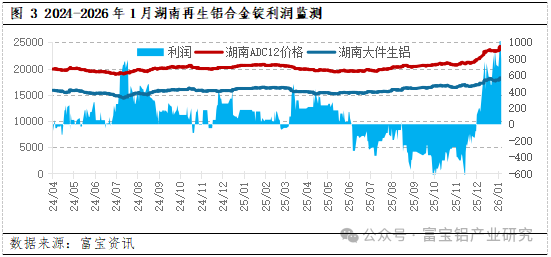 企业利润方面,1月初ADC12铸造铝合金价格大幅拉涨后整体偏长期维持高位震荡,下游消费力度尚可支撑现货ADC12铝合金价格站稳2.3万上方,企业利润空间得以扩大,截至1月30日,湖南地区铸造铝合金企业平均利润理论估算值在781元/吨,较12月底增加629元/吨。