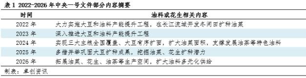 | 【导语】2026年中央一号文指出,“拓展油菜、花生、油茶等生产空间”,近两年文件连续提及花生,重视力度提升。不过暂无明确政策指引,花生播种积极性受到花生价格、玉米价格、种植收益等多方面因素引导,生产力提升速度仍受到制约。 “中央一号文”连续两年提及花生 2026年2月3日, “十五五”规划期的首个中央一号文件发布,其中提出“拓展花生生产空间、扩大油料多元化供给”。在2025年中央一号文中曾提到“挖掘油菜、花生扩种潜力”。这是连续两年具体到花生种植等方面相关内容。在2021年中央一号文件中曾提到“多措并举发展油菜、花生等油料作物”。其他年份重点提及的关于油料的作物一般为大豆、油菜籽、油茶等。由此可见近两年关于“花生”的重视力度呈提升状态,凸显了稳定发展粮油生产的态度。
