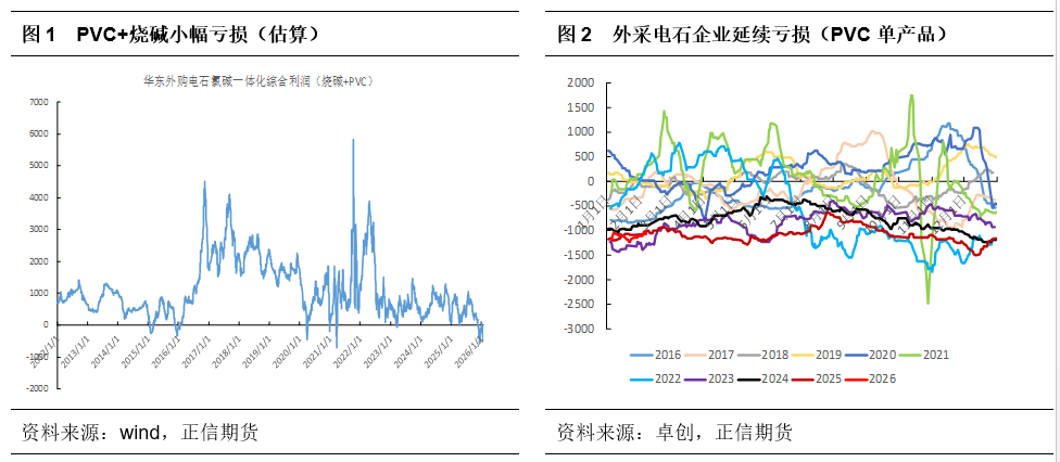 | 近期PVC低位反弹是资金情绪面、出口政策及成本端多因素共振的结果,而非供需基本面根本性改善的体现。中期来看,低估值给与PVC安全边际,核心驱动需看到供需面改善,包括供应端高成本产能部分退出、需求端房地产行业边际复苏等,预计年内PVC价格重心将逐步抬升,但上行空间有限。 一、近期延续反弹原因:低估值,抢出口 1、成本支撑有所增强,市场情绪改善下低估值修复 1月至今电石价格有所反弹,市场对成本坍塌的担忧减弱,非一体化产能转而交易亏损减产逻辑,同时由于烧碱价格持续回落,氯碱一体化(烧碱+PVC)利润下滑,成本支撑作用边际改善,助推反弹情绪。此外煤炭作为电石生产的主要原料,PVC价格波动会受到成本端煤炭价格影响。 去年四季度以来大宗商品市场整体乐观预期升温,从12月中旬开始随着化工板块整体回暖,与此同时PVC价格跌至近十年历史低点,行业普遍亏损导致市场存在较强的抄底预期,叠加市场炒作“反内卷”政策预期,资金注入推动PVC盘面估值修复。