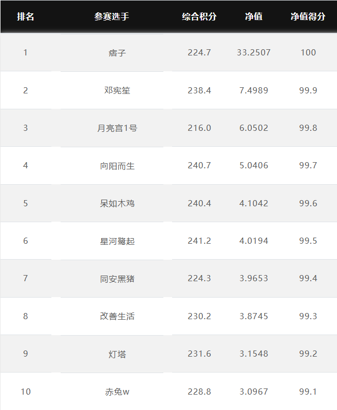 大赛净值排名前10名 2026.2.9