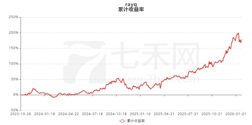 账户“rayq”,于2023年10月26日开始在七禾网资管排行榜上展示,资金曲线整体呈震荡上行态势。截至目前,账户累计净值2.782,累计收益率178.2%,累计净利润292.85万,最大回撤24.25% 。