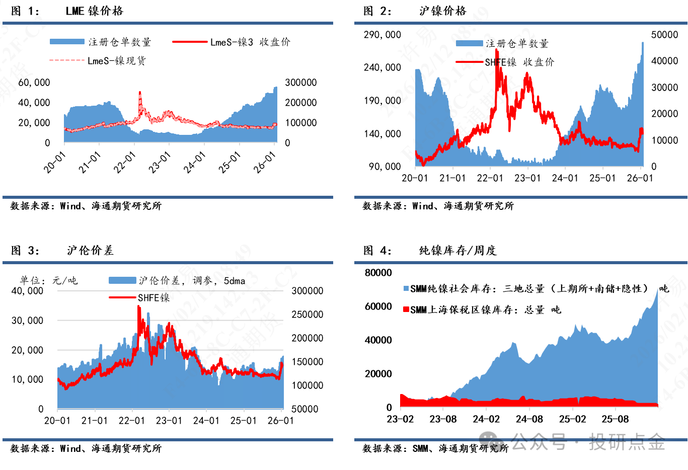 三、后市展望 总的来说,近期镍价围绕供应端叙事为核心,加以宏观环境烘托,价格脱离底部区间后有所震荡。目前印尼政府镍矿RKAB官宣,韦达湾镍矿(Weda Bay Nickel,青山控股)、恒嘉(Hengjaya)以及苏拉威西光明矿业(SCM)均不同程度获批,尤其韦达湾作为印尼苏拉威西岛和马鲁古岛(全球第一镍铁产业基地)的最主要供矿主体获批率削减70%。 预计消息端在放大镍价弹性的同时,将显著延续供应端紧张预期的叙事轨迹;叠加产业成本的整体抬升、库存的结构性差异以及宏观环境烘托,综合判断沪镍主力价格的运行中枢区间或可常态上行至13.5至14万,等待后续HPM端修订的进一步催化,建议投资者不宜因传统笼统视角下的“供应过剩格局”而过分看空。 提示: ① 2月:关注印尼对于镍参考价(HPM)计算公式的修订发布(原信息:将镍伴生矿产尤其是钴视为独立商品并征收特许权使用费;若落地将进一步抬升镍价中枢)② 3月:关注印尼政府配额发放③ 年中:RKAB修订窗口 附:其他行业数据