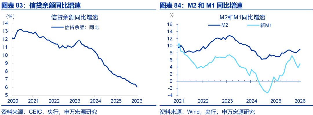 (五)央行公布2026年1月金融数据 2026年2月13日,央行公布2026年1月金融统计数据报告,其中1月份人民币贷款增加4.71万亿元。分部门看,住户贷款增加4565亿元,其中,短期贷款增加1097亿元,中长期贷款增加3469亿元;企(事)业单位贷款增加4.45万亿元,其中,短期贷款增加2.05万亿元,中长期贷款增加3.18万亿元,票据融资减少8739亿元;非银行业金融机构贷款减少1882亿元。 初步统计,2026年1月份社会融资规模增量为7.22万亿元,比上年同期多1662亿元。其中,对实体经济发放的人民币贷款增加4.9万亿元,同比少增3178亿元;对实体经济发放的外币贷款折合人民币增加468亿元,同比多增860亿元;委托贷款减少192亿元,同比多减641亿元;信托贷款减少4亿元,同比多减627亿元;未贴现的银行承兑汇票增加6293亿元,同比多增1639亿元;企业债券净融资5033亿元,同比多579亿元;政府债券净融资9764亿元,同比多2831亿元;非金融企业境内股票融资291亿元,同比少182亿元。 1月末,广义货币(M2)余额347.19万亿元,同比增长9%。狭义货币(M1)余额117.97万亿元,同比增长4.9%。流通中货币(M0)余额14.61万亿元,同比增长2.7%。1月份净投放现金5191亿元。1月份人民币存款增加8.09万亿元。其中,住户存款增加2.13万亿元,非金融企业存款增加2.61万亿元,财政性存款增加1.55万亿元,非银行业金融机构存款增加1.45万亿元。