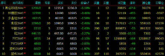 | 2026年2月26日,国内期货主力合约涨跌不一。沪锡、碳酸锂涨超3%,锰硅、铂涨超2%,燃料油涨近2%。跌幅方面,集运欧线跌超5%,合成橡胶跌超3%,多晶硅、焦煤、甲醇、钯、PVC跌超2%。