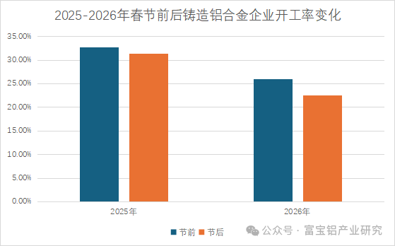 | 报告品种:铸造铝合金 原文链接:https://mp.weixin.qq.com/s/rfijJvyuDRgJjTfESl_WRw?scene=1&click_id=6 据富宝资讯调研,2026年中国再生铸造铝合金企业春节放假时间多数集中于2月13-15日之间,其中部分地区企业受政策以及设备检修等影响,存在提前1周放假情况,尤其在2026年初铝市极端行情的影响下,成本及利润波动率大幅增加,生产风险随之激增;此外节前市场需求端同比往年表现不佳,一方面铸造铝合金期货上市后期现商入场市场现货报价逐步呈现三方差异化现象(厂家-贸易商-期现商),且节前基差的扩大导致期现报价远低铝企对外售价,企业常规贸易单遭到较大压制;另一方面在现货价格波动过大背景下,2026年下游企业放假周期提前,致使铝企订单同比下滑。
