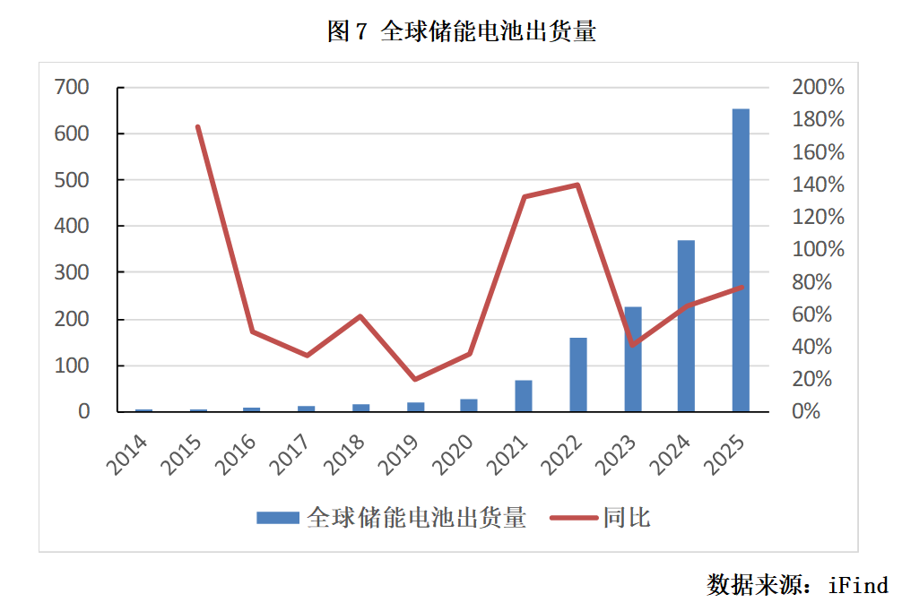 据中汽协,今年1月我国新能源汽车市场销量94.5万辆,同比增长0.1%,销量增速较去年四季度有所放缓。去年12月为政策最后窗口期,消费者集中购车,透支了1月的部分需求。今年新能源汽车购置税由免征改为减半征收,购车成本增加(以20万元车型为例,税负增加约9000元),直接抑制部分刚需,对低端车型需求形成明显抑制。全年维度,高渗透率下,国内新能源汽车销售增速或边际放缓,单车带电量提升及电动重卡有望贡献部分增量。 容量电价新政利好国内独立储能装机的增长。国家发展改革委、国家能源局于2026年1月27日联合印发《关于完善发电侧容量电价机制的通知》,首次在国家层面明确电网侧独立新型储能可获得容量电价。独立储能项目的收益结构从单一的“套利+辅助服务”升级为“容量电价 + 电能量套利 + 辅助服务”三大板块协同发力的完整模式。叠加容量电价后,独立储能项目的全投资内部收益率有望提升2-4个百分点,利好国内独立储能装机的增长。