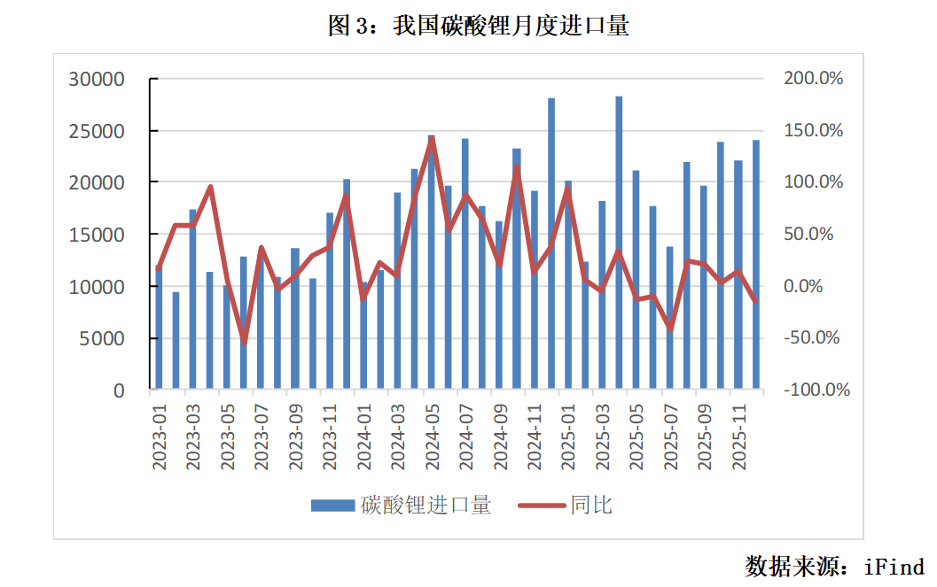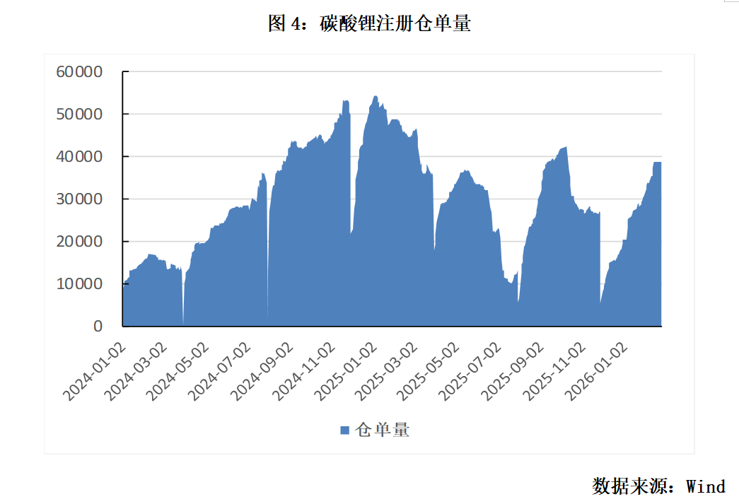 二、矿端扰动不时发生,供应存一定脆弱性 从新增产能看,2026年澳洲的主要增量是Greenbush CGP3 项目( 52 万吨锂精矿/年)投产、P1000项目稳定量产及Ngungaju工厂重启。国内增量主要来自盐湖端,新投产项目包括盐湖股份新项目、紫金的拉果错一期等。锂辉石端增量主要由大红柳滩和李家沟等项目贡献。南美产量维持稳健,主要增量来自阿根廷部分项目的产能爬坡。非洲增量较可观,多个项目投产爬坡,赣锋 Goulamina、紫金矿业Manono 及 Bougouni二期等将贡献主要增量。整体来看,预计今年全球新增碳酸锂产能40-42万吨。 矿端扰动不时发生,供应存一定脆弱性。海外方面,津巴布韦近日暂停原矿及锂精矿出口,暂无明确恢复时间表。今年1月,尼日利亚新版矿业权益金政策正式落地,对锂矿原矿按每吨9万奈拉(约人民币440元)征收权益金。每吨碳酸锂对应的权益金成本或将增加约2.2万元。国内而言,尽管枧下窝矿复产仍需通过环评验收并获取安全生产许可证,复产节点可能要到下半年。 三、冶炼端供应环比收缩,行业库存偏低 据SMM,今年1月国内碳酸锂产量9.79万吨,同比增加56.7%,环比减少1.3%。受部分锂盐厂春节检修影响,预计2月碳酸锂产量8.19万吨,环比减少16%。3月随着检修产线陆续复产,预计产量恢复至10万吨量级。 从智利进口锂盐量有所增加。1月智利合计出口锂盐3.93万吨LCE,环比增加76%,同比增加38.7%。其中碳酸锂出口量为2.29万吨,占比58.3%。另据SQM,1月出口量大增系受春节因素影响,1、2月合并发货。考虑船期因素,预计于2月中下旬开始陆续抵达国内。
