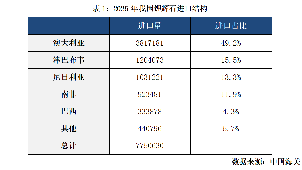 | 储能需求+供应紧平衡抬升锂价中枢。去年四季度至今的行情有个明显的特点,锂价对利多消息敏感,面对利空则呈现较强韧性。核心原因在于需求向好,更确切地说是储能领域的强劲需求,叠加碳酸锂供需格局的改善。在供应趋紧的大背景下,市场对供应扰动的敏感度明显提升,打开了碳酸锂的估值空间。现阶段向上空间主要取决于下游对锂价的承受度。锂电池成本在储能系统中占比50%以上,锂价上涨到一定程度将对下游需求形成抑制。 一、津巴布韦暂停锂矿出口影响分析 据路透社,津巴布韦矿业部周三在一份声明中表示,该国已暂停所有原矿和锂精矿的出口,旨在加强矿产监管与问责。出口禁令将持续生效直至另行通知,并适用于所有在途矿产。 津巴布韦是我国锂辉石主要进口来源国之一,2025年我国从津巴布韦进口锂精矿120万吨,占比15.5%,折合约12万吨碳酸锂当量。此前市场已有类似传闻,周三盘后得到证实。 供需角度看,该国暂停出口将进一步加剧国内供应紧张的局面。从逻辑上推测,暂停或是偏短期行为,政策旨在促进加税及当地深加工的发展。若津巴布韦暂停出口一个月,则影响碳酸锂供应1.1-1.2万吨,将造成供给缺口,加剧短期供需矛盾。