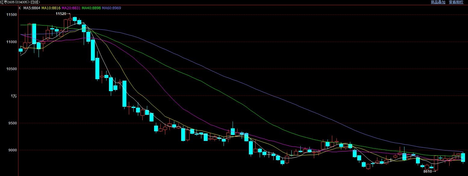 红枣:达到启动点的平仓止损/止盈条件,已于2026年2月27日14:54平仓,平仓价为8785,平仓亏损175元。