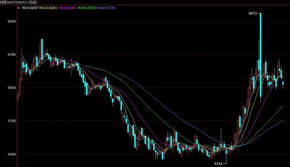 纯苯:达到启动点的平仓止损/止盈条件,已于2026年2月27日14:46平仓,平仓价为5998,平仓亏损5760元。