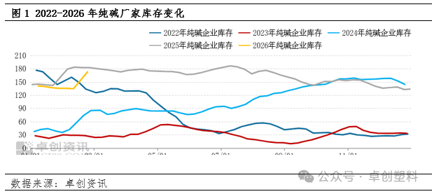 | 报告品种:纯碱 原文链接:https://mp.weixin.qq.com/s/wzhKbyzk6BZ11zcxDwg7HA?scene=1&click_id=34 春节期间纯碱厂家出货欠佳,多数厂家累库,节后行业开工负荷维持高位,下游需求逐步恢复,纯碱厂家去库压力伴随,价格预计承压运行。 2026年春节后纯碱上下游复工情况与往年基本一致。春节期间交投基本停滞,纯碱厂家多有累库,当前厂家库存处于近五年高位。节后市场观望情绪浓厚,多数厂家稳价为主,但去库压力下,市场下行可能性增加。 纯碱生产企业开工高位,下游需求尚未完全恢复 冬季为纯碱行业的开工旺季,春节假期期间检修装置不多。节后四川和邦技改停车,龙山化工、天津碱厂、湖北新都装置负荷提升,中盐昆山、淮南德邦等装置开工负荷下滑,本周纯碱行业开工负荷在84.9%,较节前提升0.6个百分点,日均产量在11.4万吨,较节前增加0.1万吨/日。 春节期间下游浮法玻璃、光伏玻璃产线变化不大,假期轻碱部分下游停工放假,初七至初十陆续开工,个别小型化工企业计划元宵节后复产。下游需求有序恢复,复工复产节奏与往年基本一致。但由于国内纯碱供应过剩,且价格持续走弱,下游节前备货情绪较往年有所走弱,节后拿货积极性也较为一般,维持刚需为主。